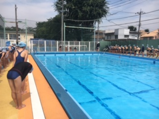 7月3日5年生プール開き 公開日 2017/07/04 更新日 2017/07/04 学年 待ちに待ったプール開き。代表児童が自分のめあてについて堂々と話をしました。危険が隣り合わせの水泳学習ですが、川場で学んだことを生かして、めりはりをつけて学習をすることができました。