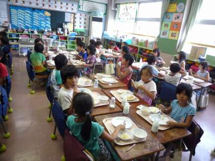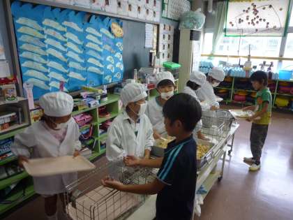 2学期に入って1年生の給食当番がとっても上手なのでパチリ!