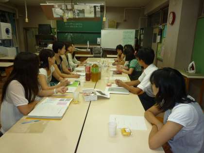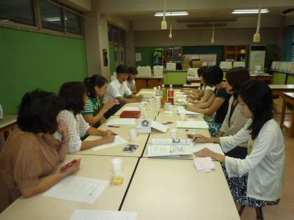 夏休み中に27講座実施されたスマイルスクール(夏季講座)の反省会が行われました。実行委員の方々が集まり、一つ一つの講座についてまじめに反省会をしています。