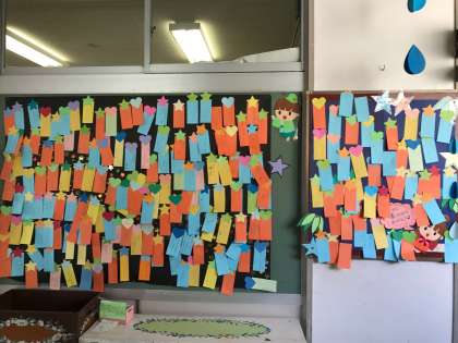 ブックアシスト 公開日 2017/07/13 更新日 2017/07/13 特色ある活動・取り組み ブックアシストの皆さんが、新しい装飾をしてくれました。 図書室前には、七夕に合わせて子供たちの願い事を飾っていただきました。また主事室前にも素敵な装飾をしていただいています。来校された時は、ぜひご覧ください! ブックアシストの皆さん、いつも子供たちのためにありがとうございます。