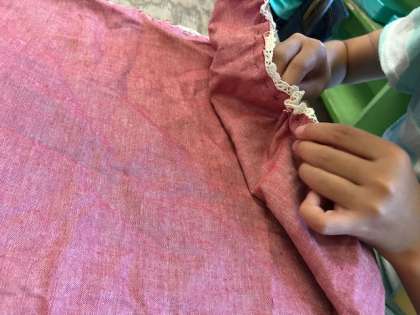 本日の手芸クラブは、前回に引き続き、グループごとに作るものを決めて、手縫いでシュシュやランチョンマットなど作りました。