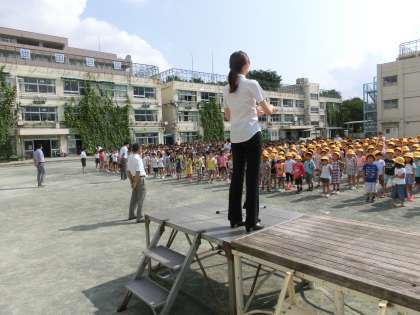 明日から夏休みです。交通事故に遭わないように気を付け、人の家の庭や駐車場に入らないを守り、楽しい夏休みにしましょう。