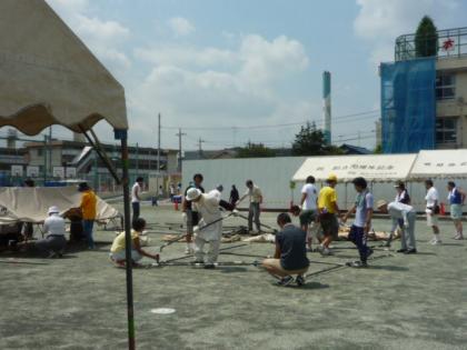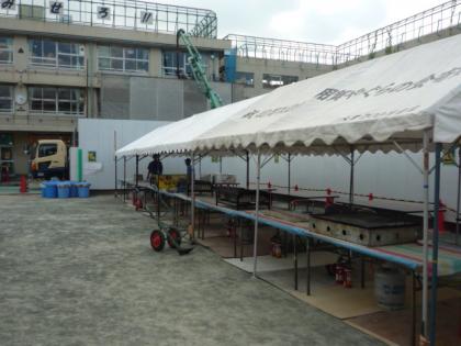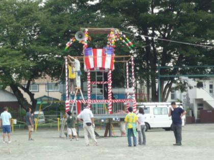 今日は、やぐらの会・地域町会の方々・PTA・そして学校の教職員が協働して会場の準備をしました。また、ようがのまちの青年が企画するYSFのメンバーも手伝いにきていました。