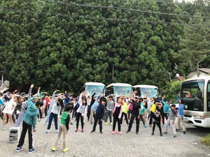 2日目の朝を迎えました。眠い目をこすりながら集合。142名、全員元気です。