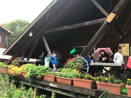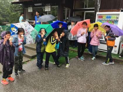 子供達も楽しみにしているアイスタイムです。残念ながら雨が止まなかったので、傘をさして味わうことになりました。