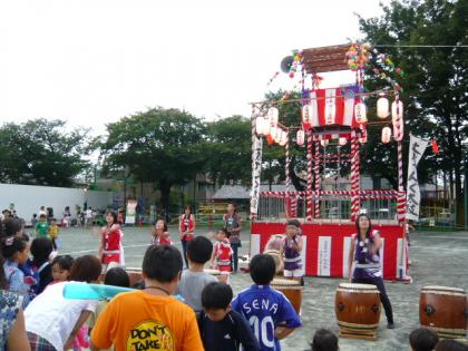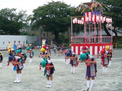 8/22 上用賀盆踊り1日目 その1 公開日 2008/08/22 更新日 2008/08/22 特色ある活動・取り組み いよいよ上用賀盆踊りが始まりました。オープニングは、3年生によるエイサーの発表です。続いて、新宿エイサー祭りに出場したメンバーによる演技が披露されました。次に大蔵てんぐ太鼓の勇壮な太鼓の音が会場に鳴り響きました。