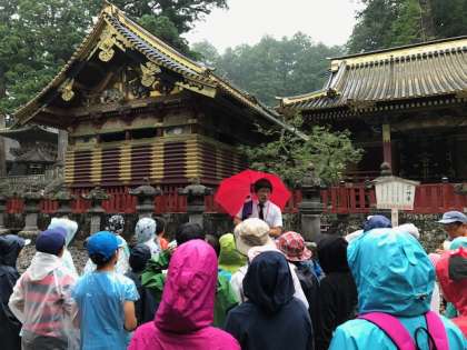 日が暮れるまで見入ってしまうというひぐらしの門、人の一生と重ねることができる三猿の彫刻、そして修復作業の過程で一時的に目を開いていたという眠り猫、徳川家康の廟と見どころがたくさん!ガイドをしていただきながら歩きました。