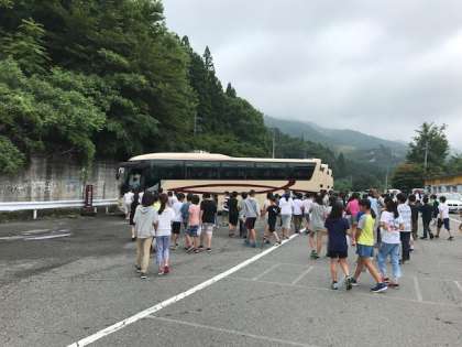 食事を終えて、2回目のお土産タイム。その後バスに乗り込みました。雨が止んだ草木ドライブインを出発し、高坂SAを15:20にでました。夏休み最初の日曜日で、今後交通渋滞も予想されますが、子供達は歌を歌ったり、ゲームをしたり楽しそうに過ごしています!
