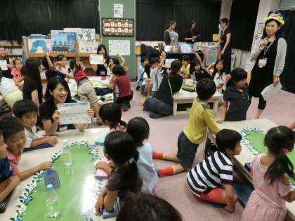 7/26(水)3・4年生と1・2年生の2回に分けて、カエルの子はカエルさん主催のスマイルスクール「これでみんなもメダカ博士!」が行われました。メダカの本の読み聞かせを聞いた後に本物のメダカを見ながらクイズに答えました。その後、折り紙でメダカを折って、自分のビオトープ作り。どの子も真剣にメダカを見たり、折り紙を折ったりして楽しんでいました。最後に絵本の読み聞かせを聞いて、出来上がったビオトープを持ち帰りました。