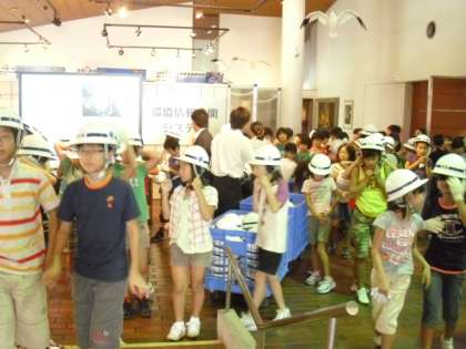 今日は5年生の社会科見学で、JFEスチール東日本製鉄所と東芝科学館に出かけました。出発式での子どもの話を聞く姿勢はとても立派でうれしく思いました。JFEスチール東日本製鉄所は、敷地がとても広く、東京ドーム120個分の大きさをもつ製鉄所です。担当の方から事前の説明を受け、最先端の製造技術や製造プロセスについての映像をみせていただきました。製鉄所内でのあいさつはすべて「ご安全に!」ということも聞き、安全に対する意識の高さを再確認しました。ヘルメットをかぶり軍手をして、さぁ厚板工場に向けてに出発です。敷地が広いため、工場へもバスで移動です。