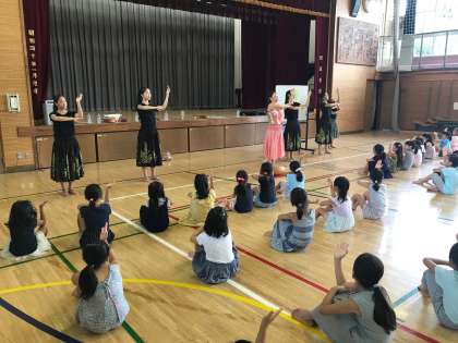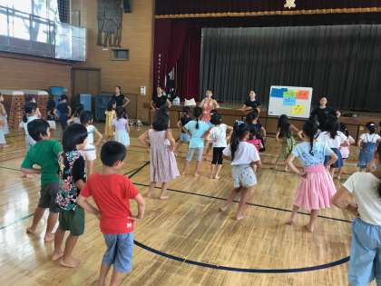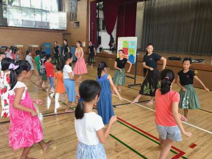 最後には一曲分の振りを覚え、笑顔で踊りることができました。体育館にいながら、南国気分を味わうことができ楽しいひと時でした。