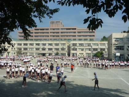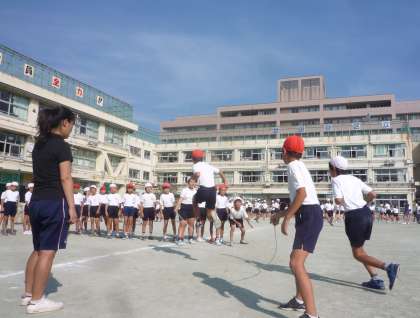 9月から休み時間に学級ごとに練習してきた長縄の体育朝会が始まりました。学級のチームワーク作り、運動感覚づくりにはとてもよい運動種目なので全校で取り組みます。