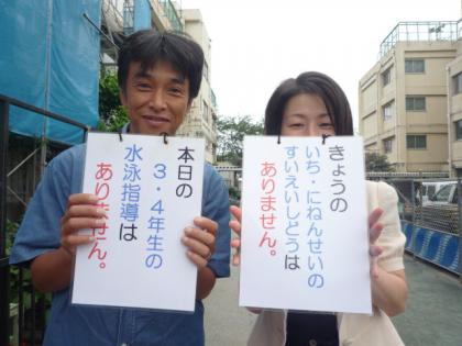 残念ながら、本日も低温のため、午前中の水泳教室は中止いたします。