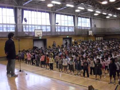 今日の全校朝会は雨のため体育館で行いました。私は先日行われた、道徳授業地区公開講座で2年生が「友達のよいところを見つけて発表しよう」という授業をしていましたので、その授業に触れながら、今週は「友達の良いところを見つけよう」週間にしようという話をしました。ご家庭でもいたらない点は何かと目につくものですが、良い面は見ようとしないと見えないことがあるものです。小さなことでもがんばっていることは誉めてあげる「小誉め」大作戦を実行してみてはいかがですか!誰でも誉められると嬉しいものです。