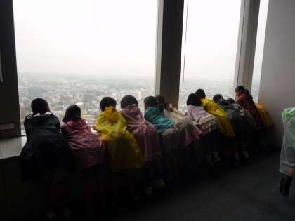 昼食は、雨のためバスの中で食べました。午後は三軒茶屋の商店街(アーケードと仲見世)の見学とキャロットタワーのスカイキャロットから世田谷の町を上から眺めました。ちょっと残念だったのは、霧にかすんで用賀のSBSのビルが見えにくかったことです。