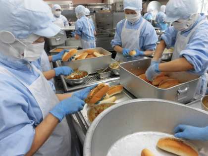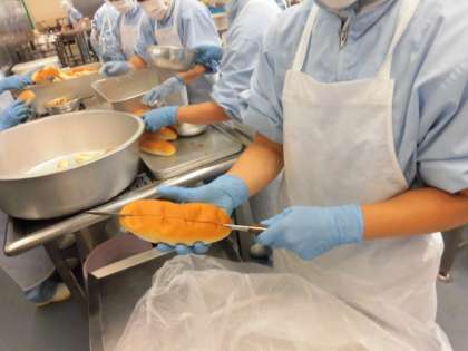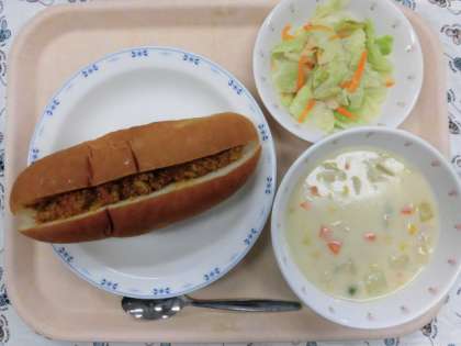 ※写真は、パンを背割りにしてドライカレーを詰めている様子です。