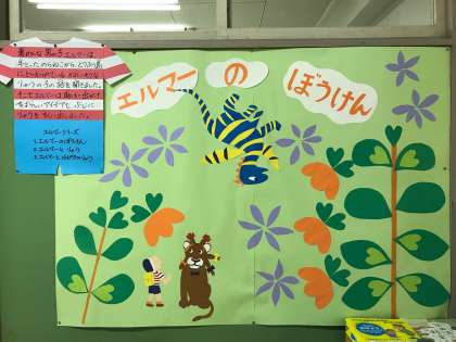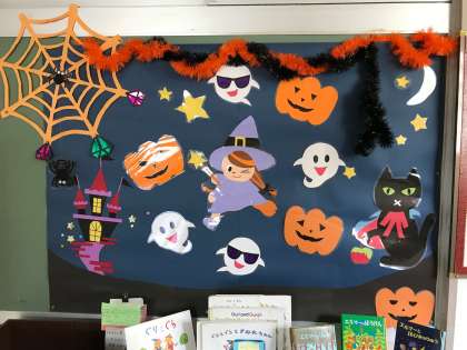 10/3 ブックアシスト 公開日 2017/10/03 更新日 2017/10/03 特色ある活動・取り組み ブックアシストの皆さんが、職員室前と図書室前、また図書室の中にも素敵な飾りつけをしてくださいました。ありがとうございます! 職員室前には、エルマーの冒険の紹介があります。 図書室には、ハロウィンの飾り付けがあります。 ぜひ、見に行ってください。