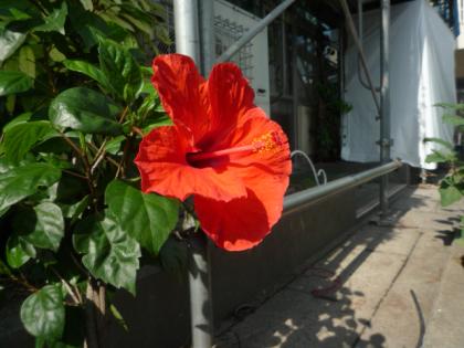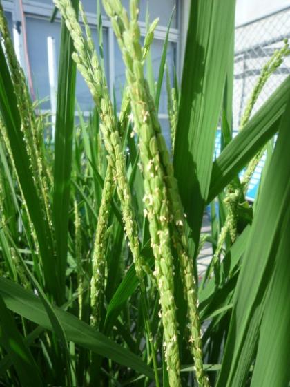 用賀田んぼの稲も花をつけ、ハイビスカスも太陽の光をを浴びて気持ちよさそうに咲いています。
