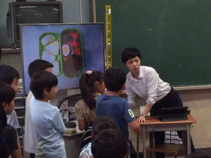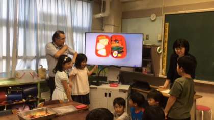 用賀小でも定番となった、東京農業大学と連携した食育の授業。3年生では「バランスよく食べよう」というテーマで授業をしていただきました。