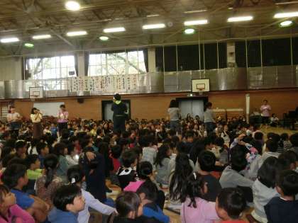 創立60周年記念 開校記念集会(1) 公開日 2017/10/17 更新日 2017/10/17 今日のできごと 本日の3・4校時に、体育館で開校記念集会を行いました。記念集会には、用賀小学校の第1期生である和田善之さんに来ていただき、開校当時のお話をしていただきました。 子供たちは、当時の学校の様子を興味深く聞いていました。 60周年を記念して、「用賀小大好き」の歌に合わせて考えた踊りを、全校で踊りました。