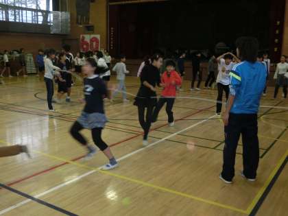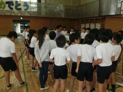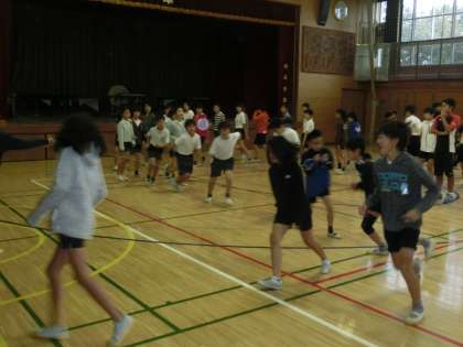 連合運動会に向けて 公開日 2017/10/19 更新日 2017/10/19 学年 6年生の連合運動会まで、あと1週間。 しかし、連日の雨で校庭での練習はなかなかできそうにありません。 今朝も体育館での練習となりました。 子供たちの表情も益々凛々しくなってきました。