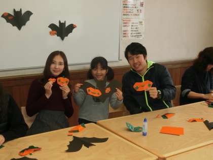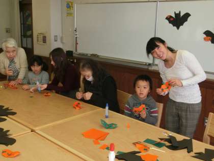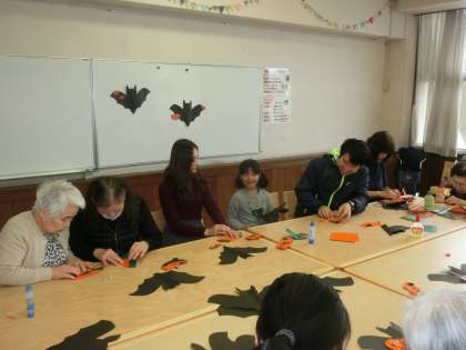 雨ですが、ランチルームでのつきいちサロンでは、ハロウィンに合わせて素敵な折り紙を折りました。