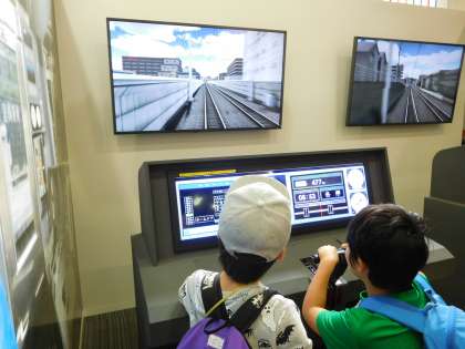 シミュレーターで実際に電車やバスの動かし方を学びました。