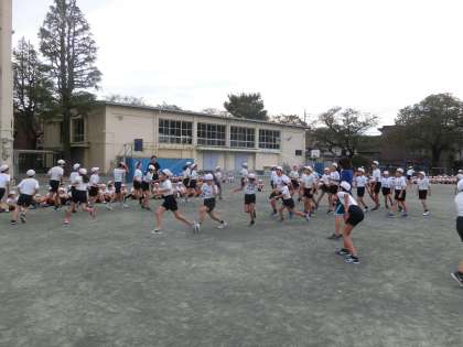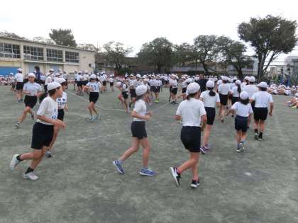体育朝会 公開日 2017/10/24 更新日 2017/10/24 今日のできごと 本日の体育朝会は、長縄跳びでした。どの学級も練習を重ねて記録を伸ばしてました。 6年生は、連合運動会に向けて、最終練習を全校の前で行いました。