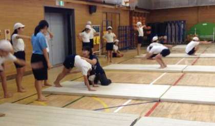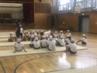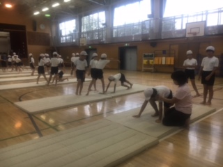 マット運動の学習もまとめに入りました。5年生では後転、大きな前転、補助倒立を学習しています。はじめて補助倒立に取り組んだ時には、怖い、と感じなかなか足が上がらない子が多くいました。そこで、夏のすまいるスクールで低学年の体操教室を開いてくださった本校保護者、新藤さんにサポートに入っていただきました。今では子供達同士、声をかけ合い伝え合いながら、技に取り組んでいます。新藤さんに教えていただいた、体を締める、を意識して、残りの学習も進めていきます。明日もどうぞよろしくお願いします。