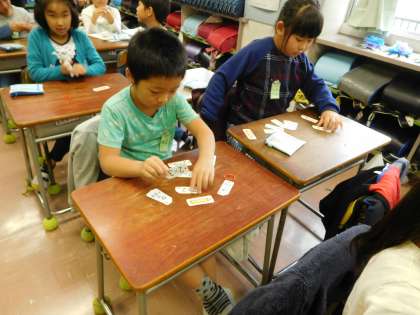 九九カードを使い、隣の席の友達と
