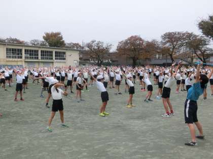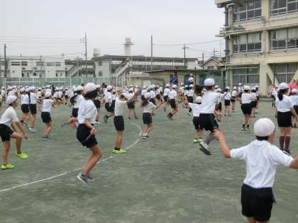 前日の低学年に続き、4〜6年生の短縄朝会が行われました。