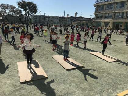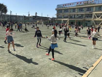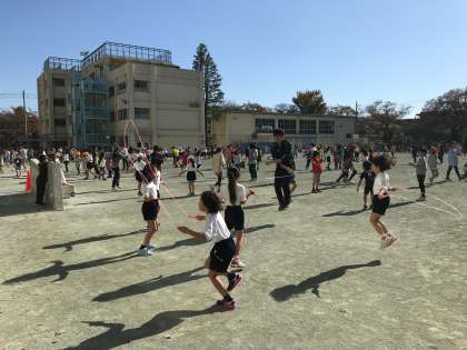11/9 休み時間 公開日 2017/11/09 更新日 2017/11/09 今日のできごと 第1回体育朝会を終え、休み時間は短縄を手に校庭に出る子が多くなっています。学年を問わず、友達と一緒に教えあったり、お手製の縄跳び板の上で跳び続けたり、短縄カードに取り組んだりする姿がたくさん見られます。 次回の体育朝会は11月下旬に行われます。 寒さに負けず、体を動かしたり、技を磨いたりするきっかけになるといいですね。