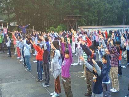 10/7 川場移動教室 2日目ー1 公開日 2010/10/07 更新日 2010/10/07 校長室より おはようございます。川場の天気は秋晴れです。6時30分前には全員が集まって、ラジオ体操から1日が始まりました。ちょっと湿った空気をいっぱい吸い込みました。私は、全員が時間を守れたことを、まず誉めました。みんな元気です。