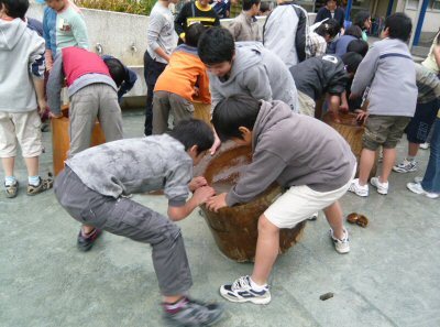 明日は、ふれあい学習(もちつき大会)です。今日は、その準備をしました。臼や杵、セイロを倉庫から出して運んだり、タワシでごしごし洗ったり、水を張ったバケツに杵を浸したりしました。ふれあい学習の準備が、6年生から5年生へ学校の仕事をするバトンタッチです。人数にしては、多い仕事ではありませんでしたが、自分から仕事を探しまわっている子どもがたくさんいました。とても頼もしく思いました。