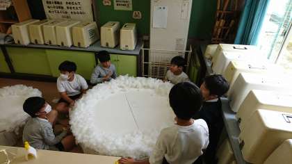 家庭科60周年おめでとうの気持ち 公開日 2017/11/14 更新日 2017/11/14 専科 今週末は、用賀小学校60周年記念式典があります。 60年の感謝の気持ちをこめて、お誕生日ケーキを作っています。 図工クラブ、5年生、6年生が協力して仕上げています。 ケーキのスポンジ部分は図工クラブ。イチゴは5年生。綿や装飾は6年生。がんばって作りました。 自分たちが作ったもので、感謝の気持ちを伝えられることも、すてきですね。 校舎の入り口に展示する予定です。 ぜひご覧ください。