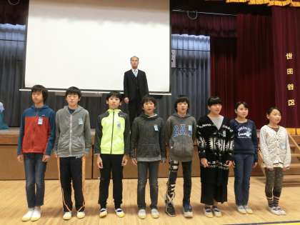 地域や同窓会の皆様からは体育館の幕や顕微鏡、楽器をいただきました。PTAからは手作りの用賀小トランプをいただきました。