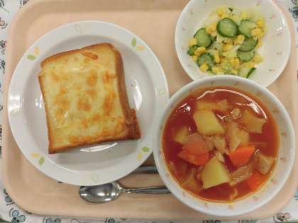 今日のスープは、寒い季節にぴったりな「ボルシチ」を出しました。そこでクイズです。「ボルシチ」は、どこの国の料理でしょうか?