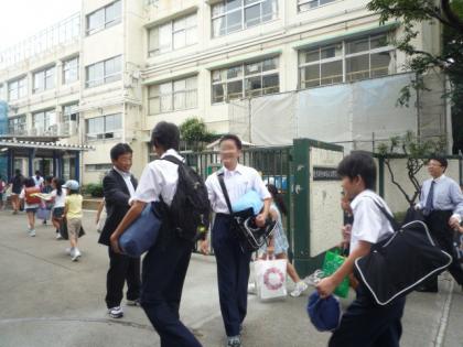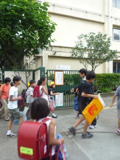 でも、両手にいっぱいの荷物からは、昨日まで悪戦苦闘していた夏休みの作品の数々がのぞいています。
