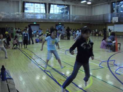 けん玉、バランスボール、ラダーなど、どの種目も楽しいものばかりで、子どもたちの笑顔が体育館に溢れていました。13種目の昔遊びやニュースポーツにチャレンジした子どもは、参加賞のおもちゃまでもらってルンルンで帰っていきました。野口先生、諸星先生、志村先生、藤村先生、教育実習生の元島先生も一緒に遊んでくれました。遊び場開放運営委員の方々をはじめ、YCC、おやじの会、そしてお手伝いをいただいたすべての方々に感謝いたします。ありがとうございました。