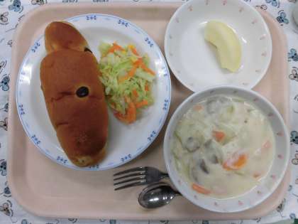 今日の給食は、「クリームシチュー」です。クリームシチューには、牛乳を使っているので、カルシウムがたくさん入っています。クイズです。クリームシチューには、牛乳だけでなく、牛乳から作られたものもいくつか入っています。さて、いくつ入っているでしょうか?