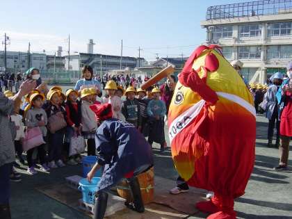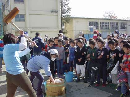 創立60周年記念もちつき大会 2 公開日 2017/12/02 更新日 2017/12/02 今日のできごと 今年は、60周年記念キャラクターのヨッショーも登場しました。ヨッショーも子どもたちも、みんなではりきって、おもちをつきました。「よいしょ!」「よいしょ!」のかけ声で盛り上がり、みんなうれしそうでした。