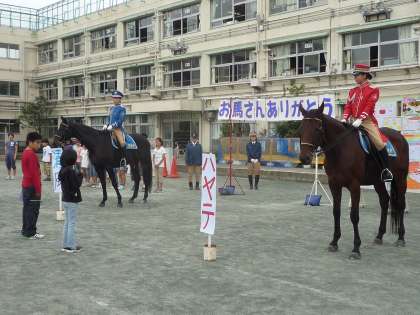 今日はお馬さんありがとう集会です。警視庁騎馬隊の方々とお馬さんが、毎朝、用賀小学校の子どもたちの安全を見守ってくださっています。もう40年程前から、雨が降らない限り交差点で交通安全をしてくれています。