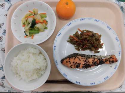 今日は、今が旬の「ごぼう」を使って、きんぴらごぼうを作りました。そこで今日は、「ごぼう」のクイズを出したいと思います。ごぼうには、おなかの中をきれいにしてくれる栄養素がたくさん入っています。さて、その栄養素とは、次のうちのどれでしょうか?