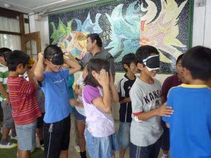 4年生のアイマスク体験の授業は「共に生きる」の単元の体験です。