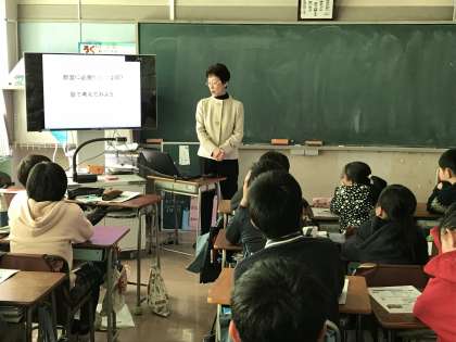 6年生の社会科では、国の仕組みや政治について学習をしています。先日、玉川税務署の方にお越しいただき、税についてお話ししていただきました。
