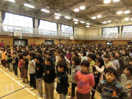 明日は登校しながらゴミ拾いをします。これも3校で行い、学び舎地域清掃といいます。2月には3校の代表の子どもたちが用賀中に集まって話し合いをします。学び舎生徒会といいます。3月には用賀中の中学生が来て、学び舎合唱交流をします。2学期には京西小の同じ学年の人と交流をしました。学び舎小小交流です。