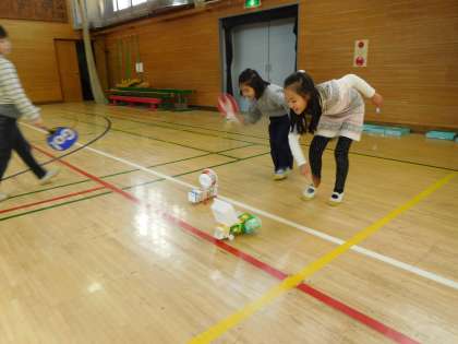 おもちゃを動かし、ゴール目指してがんばりました。