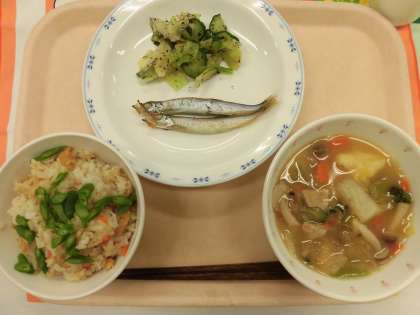 今日の給食の「すいとん」は、歴史が古い料理で、室町時代から食べられていたそうです。そこで、クイズです。「すいとん」は、何から作られているでしょうか?