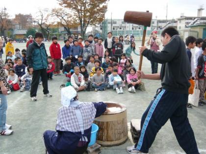 担任の先生が杵を振るうとかけ声が一段と大きくまりました。