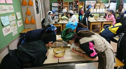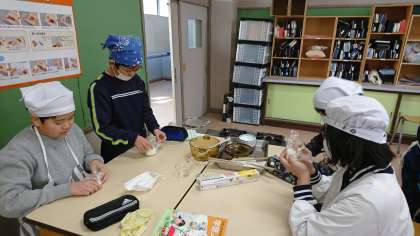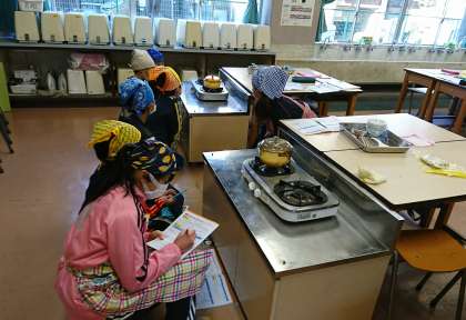 5年生の家庭科の授業で、中身が見える透明ななべを使って、すい飯にチャレンジしました。前回の授業では、米を研いだあと、吸水させたご飯と吸水させなかったご飯を食べ比べました。好みはありましたが、吸水させたご飯の方が、「ふっくらしていて甘さがある」「おいしい」ということを確認しました。お米を研いで、30分以上吸水をさせて、点火。